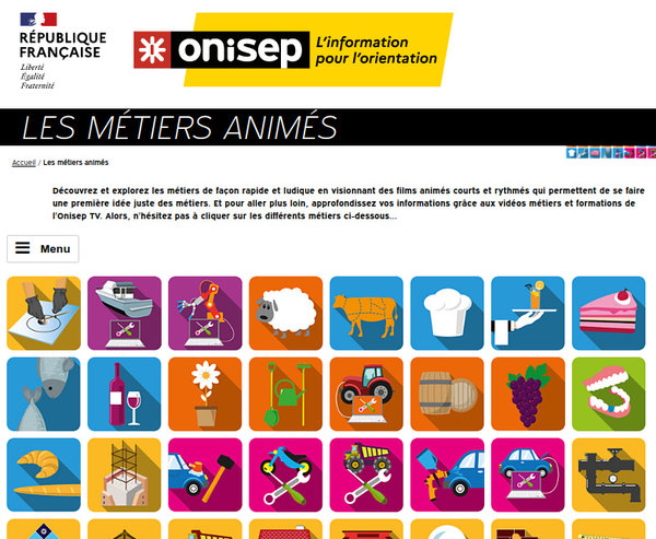 Avec "Les métiers animés", l’Onisep (Office national d’information sur les enseignements et les professions) propose aux élèves de découvrir et d’explorer les métiers de façon rapide et ludique en visionnant des films animés courts et rythmés qui permettent de se faire une première idée plus juste.