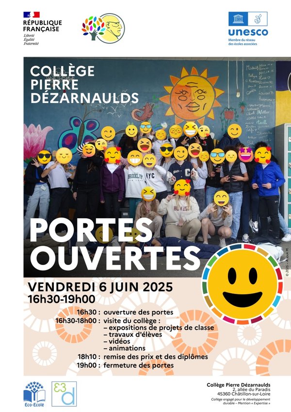 Venez nombreux au portes ouvertes du collège Pierre Dézarnaulds pour le faire visiter à vos enfants qui y entrerons l’année prochaine... ou pour les curieux découvrir les travaux des élèves du collège. Dans tout les cas, nous serons très heureux de vous recevoir dans notre prestigieux collège de renommée internationale !